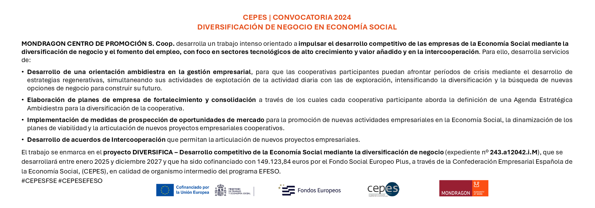 MONDRAGON Business Development Centre is MONDRAGON’s corporate platform whose mission is the development of entrepreneurship, diversification, and the generation of New Business Activities.